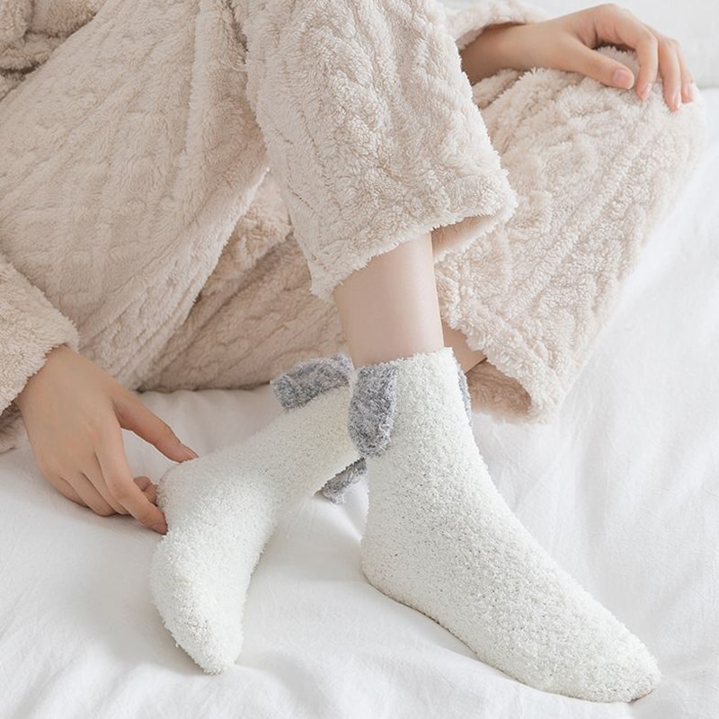 Desain produk menggabungkan elemen -elemen Jepang, ditandai dengan kesederhanaan, kesegaran, dan kelucuan, memenuhi kebutuhan estetika wanita muda modern. Kaus kaki dihiasi dengan telinga kelinci tiga dimensi, meningkatkan kesenangan dan kelucuan mereka, membuat orang merasakan pesona unik mereka sekilas. Terbuat dari bahan bulu karang, yang lembut, nyaman, dan hangat, sangat cocok untuk dipakai di lingkungan rumah. Pada saat yang sama, tekstur bulu karang juga dapat membawa pengalaman taktil yang baik pada kaki. Beberapa area kaus kaki dirancang dengan setengah flanel, yang tidak hanya mempertahankan kehangatan bulu karang tetapi juga meningkatkan kemampuan bernapas dan fleksibilitasnya, membuat memakai lebih nyaman.